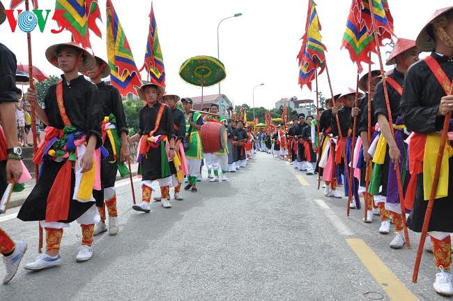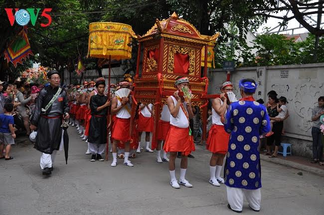 Từ bến sông về đình, đội rước nước đi dọc làng Chèm.