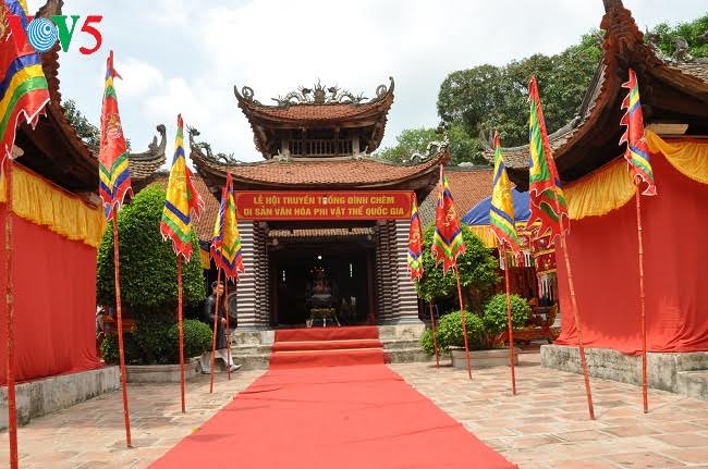 Phương đình đình Chèm ngày lễ được trang hoàng lộng lẫy, cờ xí rợp trời.