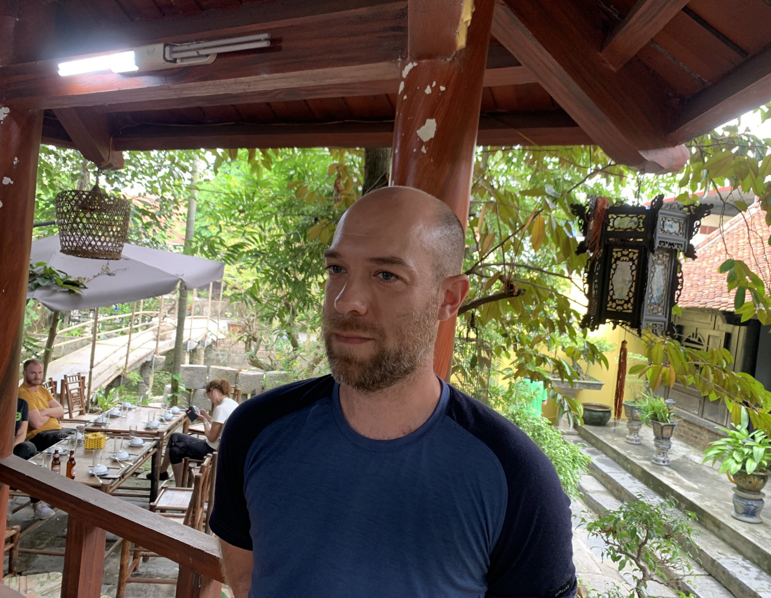 Anh Saiseau Camille đến từ Toulouse, Pháp lưu trú tại Ecohost- khu nghỉ dưỡng còn lưu giữ kiến trúc Pháp cổ. - Ảnh Hà Linh |