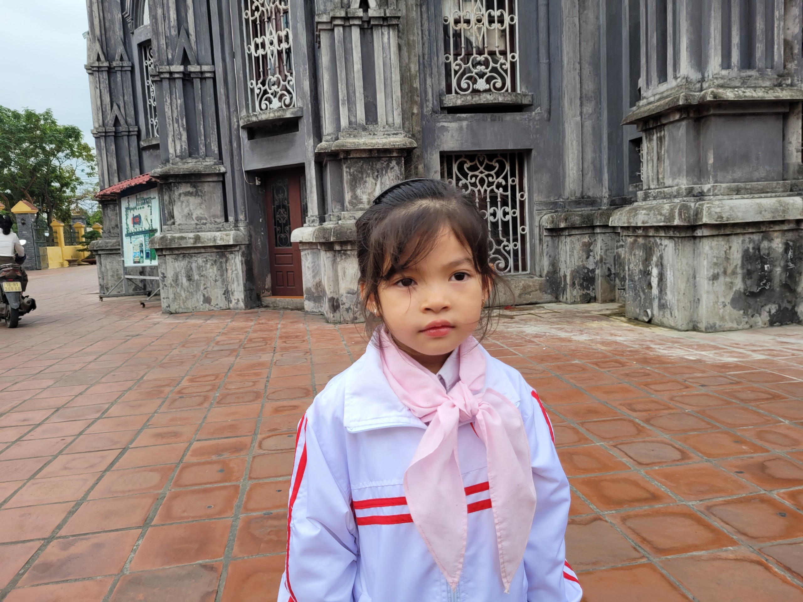 Bé gái tham gia lớp học cuối tuần ở Nhà thờ Hưng Nghĩa. Ảnh Hà Linh |