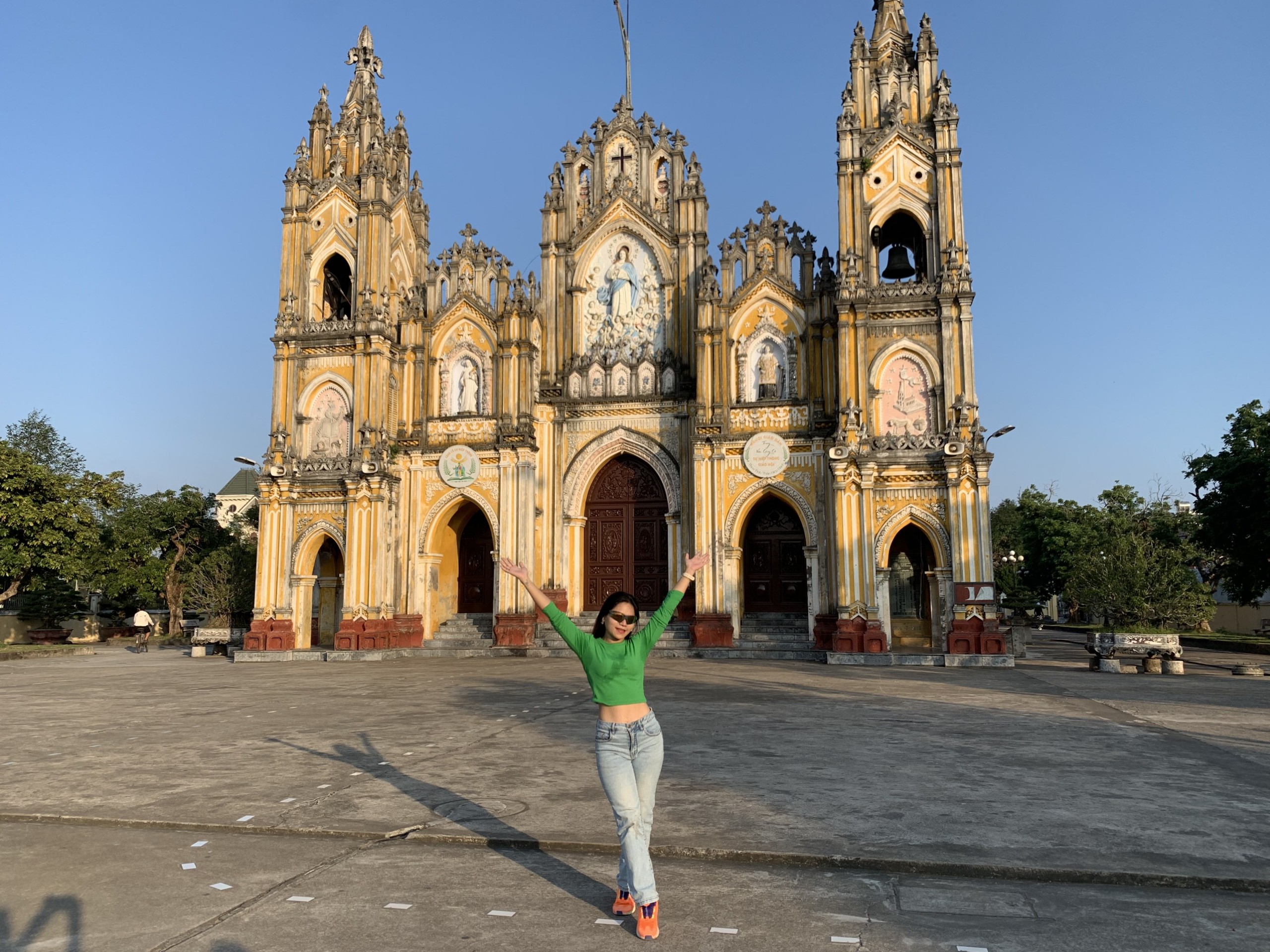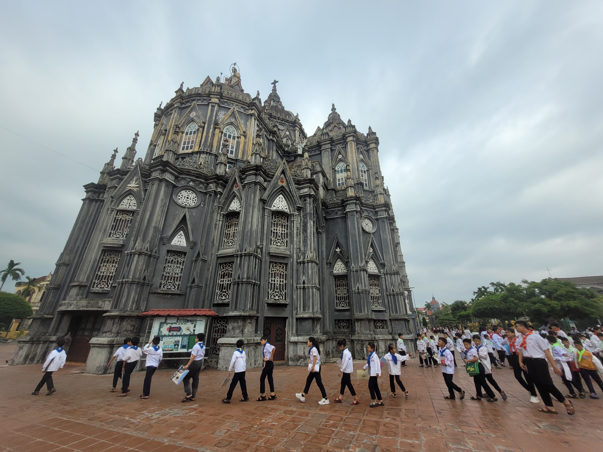 Du khách thích thú check-in ở nhà thờ Phạm Pháo. |