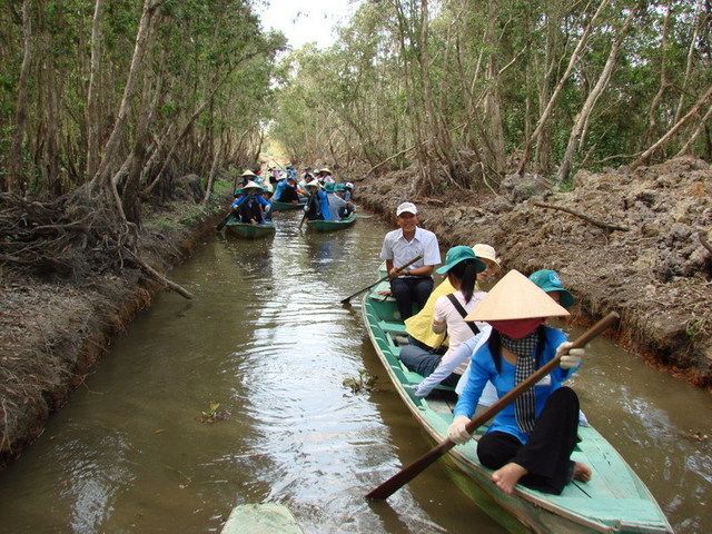 | đội xuồng chèo tay đưa khách đi tham quan. Ảnh: tourmientay |