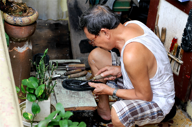 Ông Phạm Quang Xuân tiếp tục niềm đam mê với dép cao su sau khi nghỉ hưu - Ảnh: vuadeplop.com |