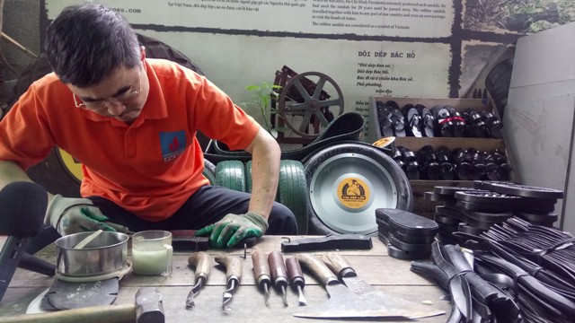 Anh Nguyễn Tiến Cường kế nghiệp cha vợ để thành lập thương hiệu "Vua dép lốp" -Ảnh: vuadeplop.com |