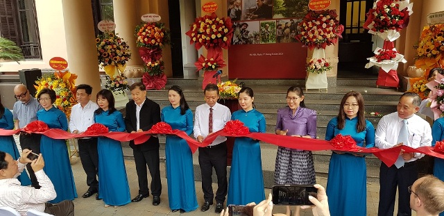 Cắt băng khai mạc triển lãm “Tấm lòng của họa sĩ Việt kiều với Bác Hồ”. Ảnh: Ngọc Anh |