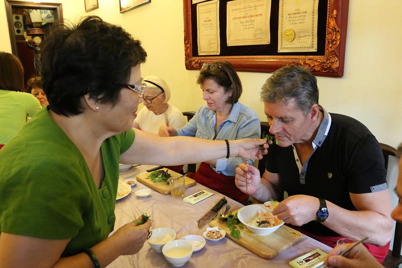 Nhóm khách hôm nay gồm 5 người, họ đến từ nước Pháp. Sau khi được cô hướng dẫn viên Nguyễn Phương Chi của công ty du lịch Exo dẫn đi một vòng tham quan chợ Hàng Bè, có vẻ như họ rất háo hức khi tham gia vào buổi dạy nấu ăn này. Anh Christian chia sẻ: “Trước khi sang Việt Nam tôi đã biết các món ăn của Việt Nam qua những lần đến các nhà hàng châu Á, nhưng cái gu ẩm thực Việt không rõ ràng lắm vì bị lẫn với các món ăn Thái hay món ăn Trung quốc, Lào, Campuchia… Theo như chúng tôi biết, để chuẩn bị một món ăn của Việt Nam thì sẽ rất mất thời gian. Bởi vậy chúng tôi rất tò mò khi biết sẽ được học nấu ăn những món ăn Việt Nam”.