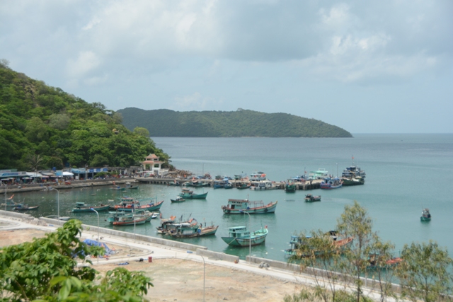 | Cảng cầu tàu trên đảo Hòn Lớn nhìn từ trên cao |
