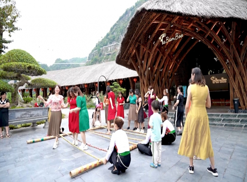Du khách thích thú khi đến du lịch bản làng |