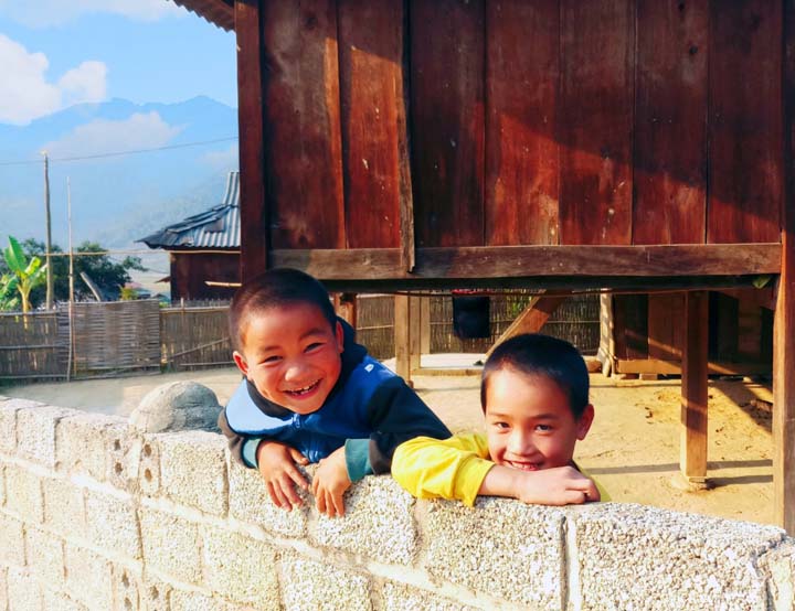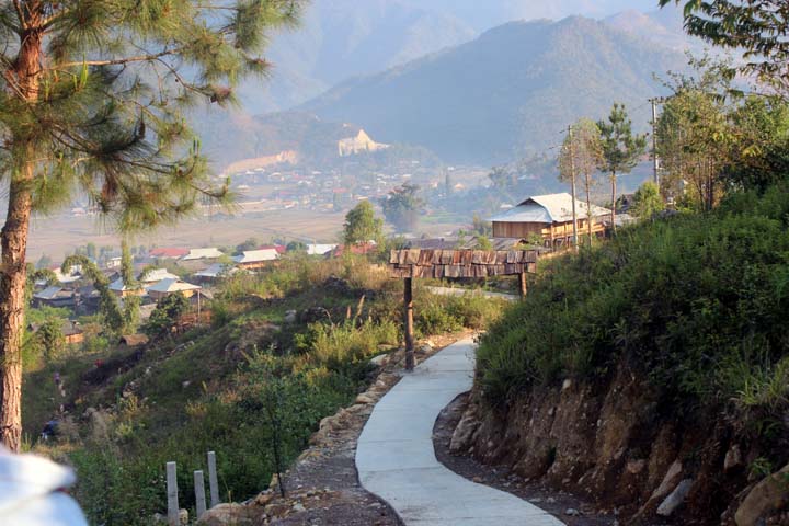Từ những con đường mòn dẫn vào bản làng, du khách có thể chiêm ngưỡng vẻ đẹp của thung lũng với những mái nhà sàn và ruộng bậc thang thấp thoáng phía xa.