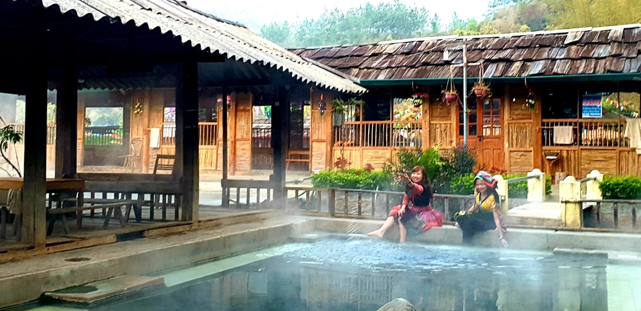 Ở bản Lướt, du khách sẽ được trải nghiệm hoạt động tắm cộng đồng trong các bể nước khoáng nóng theo cách của người Thái.