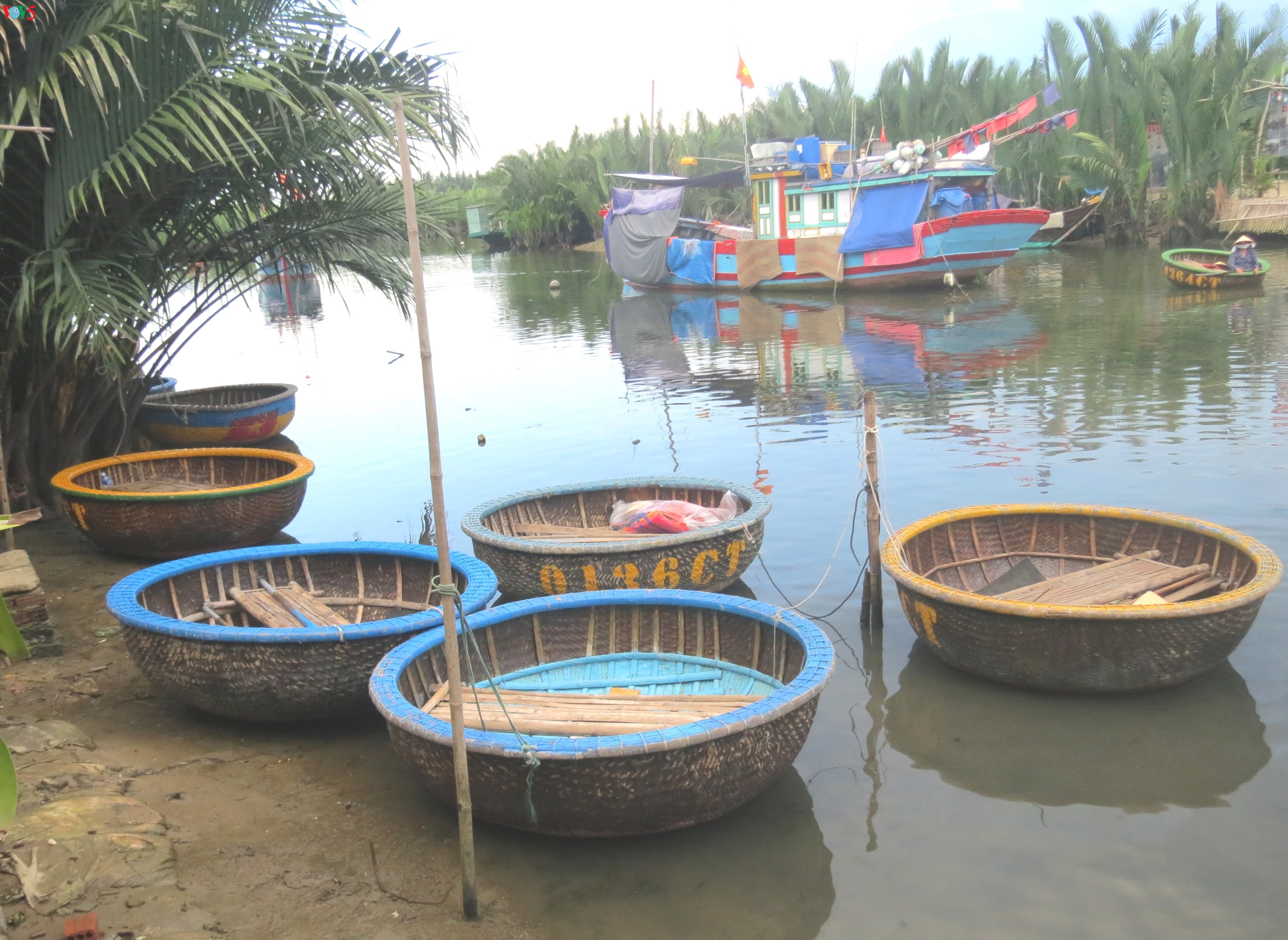 Những chiếc thuyền thúng được sử dụng trong tuyến du lịch rừng dừa Bảy Mẫu.
