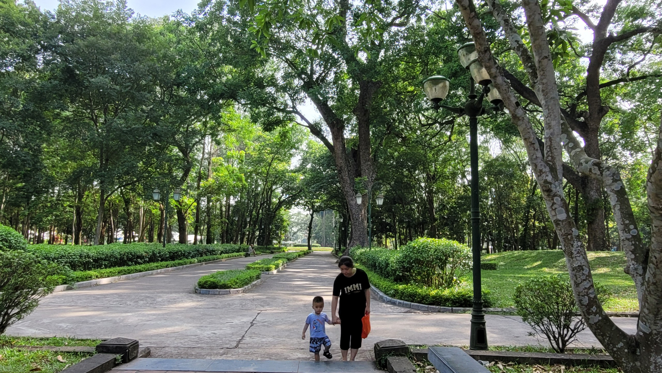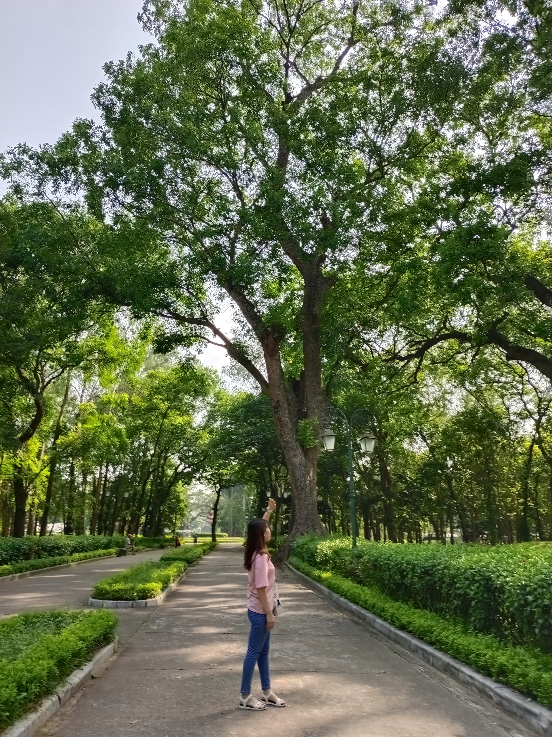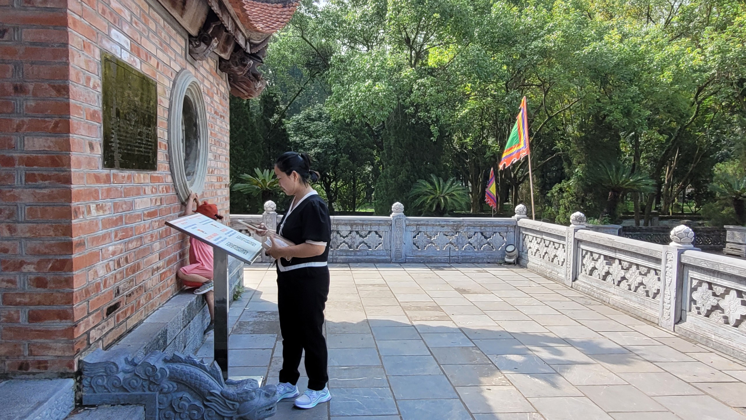 Mệt mỏi dường tiêu tan hết, du khách bắt tản bộ dưới những tán cây đại thụ xanh mát, để tìm hiểu nhiều hơn về khu du tích rộng 16 ha này, dưới sự hướng dẫn của ông Trần Văn Thành, người trông coi quản lý khu Điện Kính Thiên…