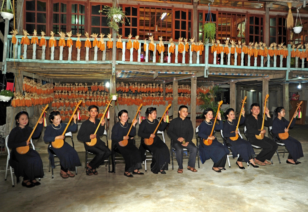 Đội văn nghệ biểu diễn những làn điệu Then, Sli, Lượn,… phục vụ du khách tại homestay