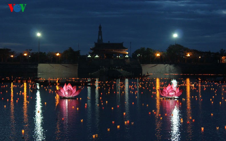 Thả hoa đăng trên sông Thạch Hãn (Ảnh: vov.vn)