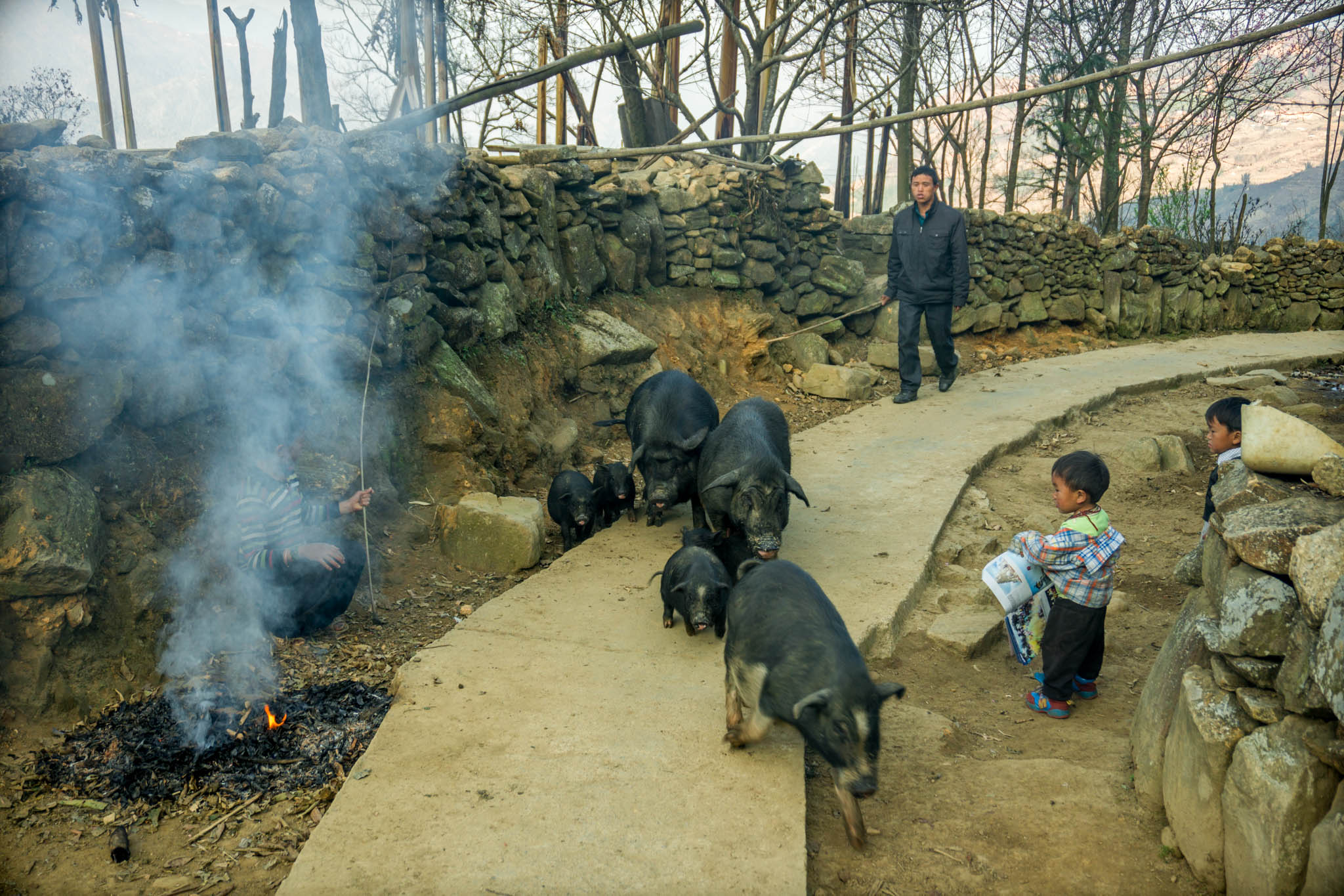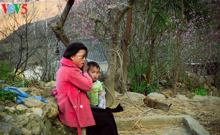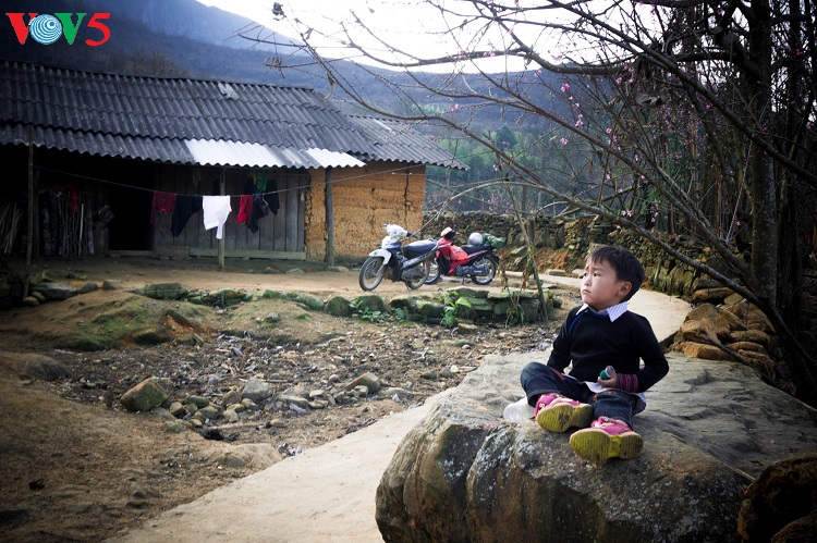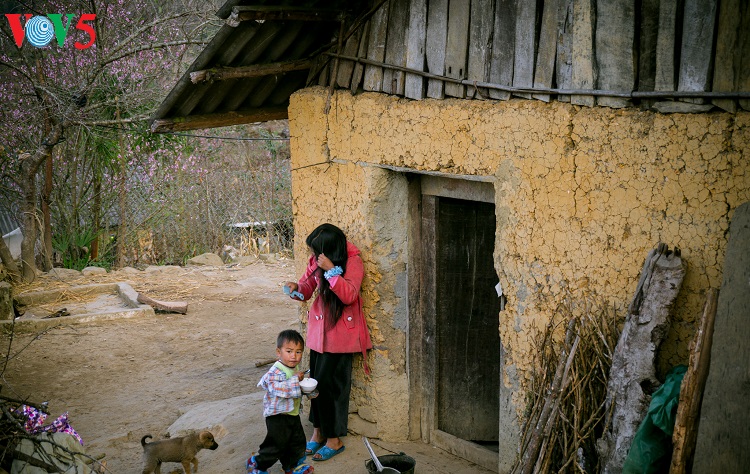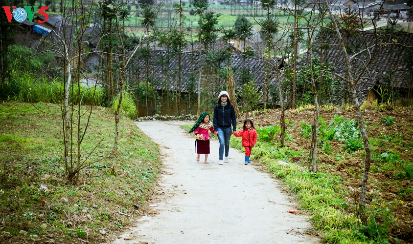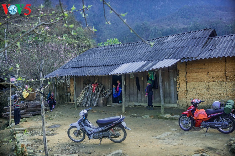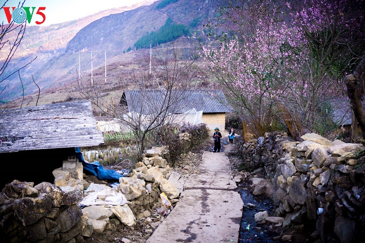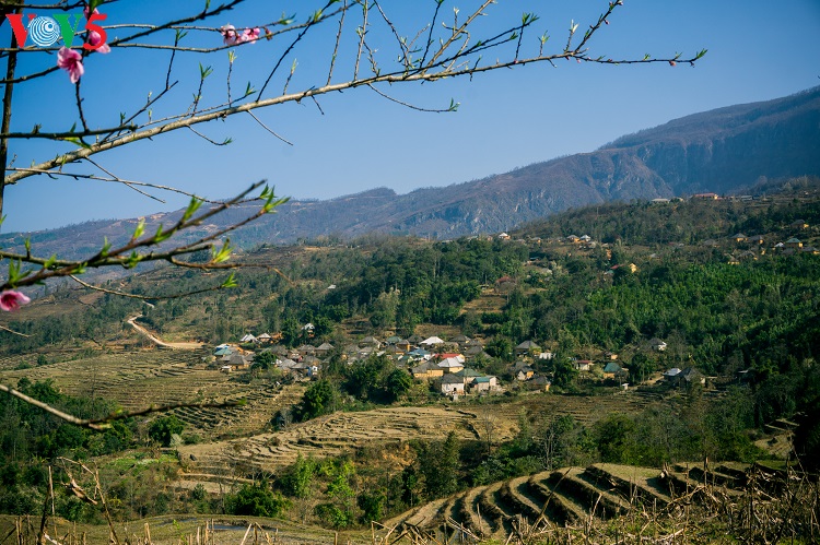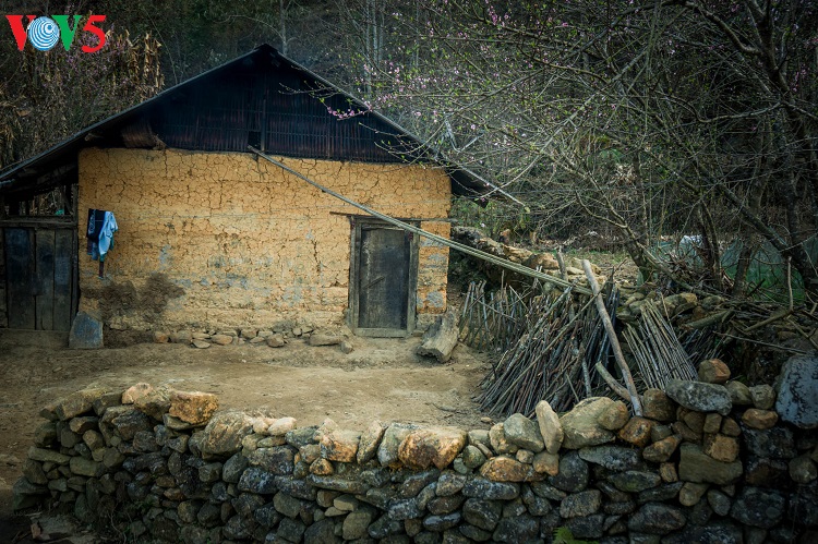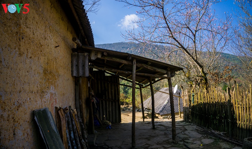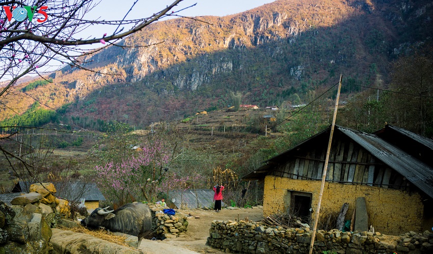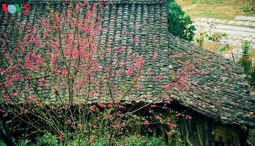 Những ngôi nhà trình tường nép mình trong sắc Xuân như cuộc sống miền biên ải muôn đời vẫn thế. |