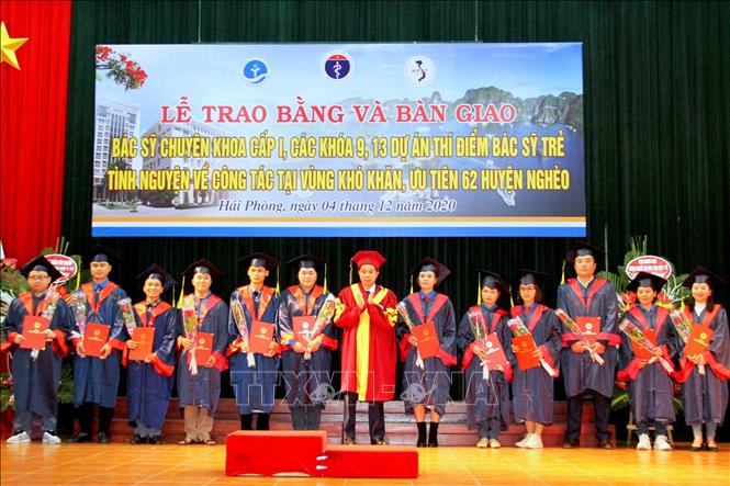 Ngày 4/12, tại Đại học Y Dược Hải Phòng, Bộ Y tế tổ chức trao bằng và bàn giao 60 bác sĩ trẻ vừa tốt nghiệp khóa Đào tạo bác sĩ chuyên khoa cấp I các khóa 9 và 13 thuộc Dự án “Thí điểm đưa bác sĩ trẻ tình nguyện về công tác tại miền núi, vùng sâu, vùng xa, biên giới, hải đảo, vùng có điều kiện kinh tế - xã hội đặc biệt khó khăn.