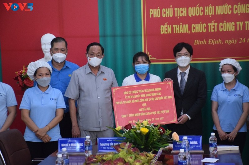 Cùng ngày, Phó Chủ tịch Quốc hội Trần Quang Phương tới thăm hỏi, động viên và tặng quà Tết 50 gia đình chính sách, hộ nghèo ở xã Bình Thành, huyện Tây Sơn, tỉnh Bình Định; tặng quà 100 công nhân của Công ty TNHH May mặc Able Việt Nam tại Khu công nghiệp Phú Tài; chúc Tết Trung đoàn Cảnh sát cơ động - Bộ Công an đóng quan tại tỉnh Bình Định.