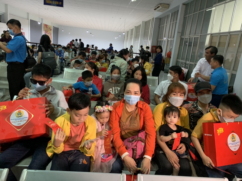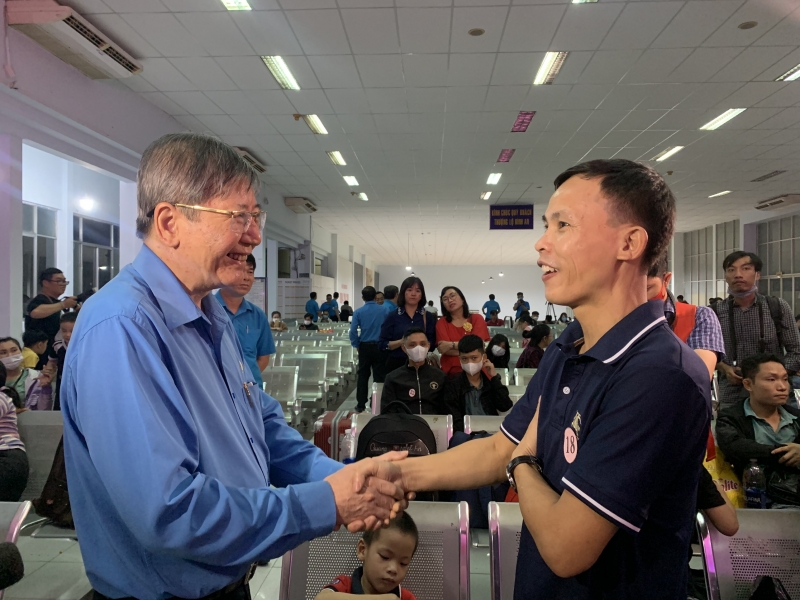 Tiếng còi tàu vang lên, người khệ nệ xách hành lý lên tàu, người bế con, cõng con trên lưng. Bước lên chuyến tàu hạnh phúc, những cái bắt tay bịn rịn giữa công nhân với đại diện tổ chức công đoàn, lãnh đạo công ty, họ hứa hẹn sớm quay lại Thành phố Hồ Chí Minh để lao động sản xuất.