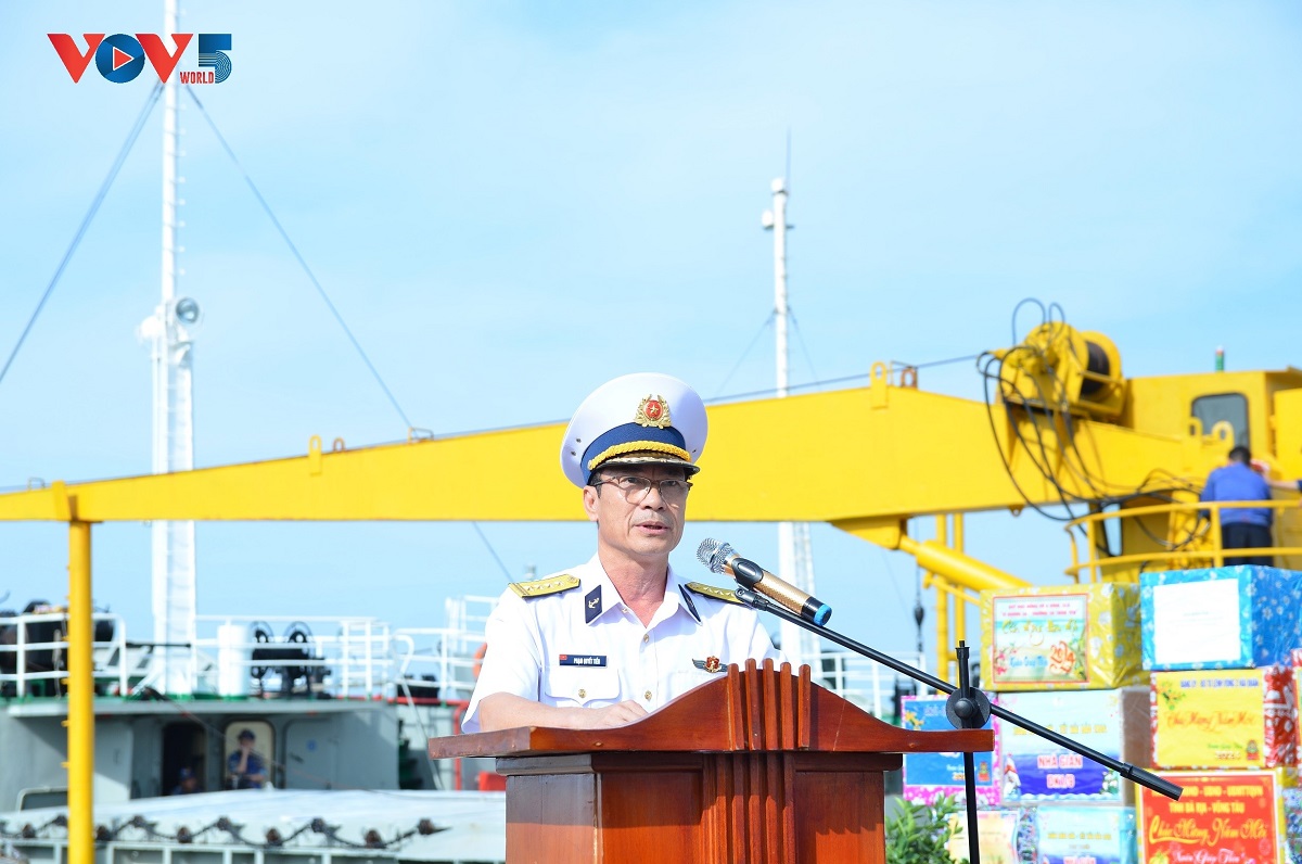 Đại tá Phạm Quyết Tiến, Phó tư lệnh Vùng 2 Hải quân, cho biết: "Mỗi dịp Tết đến, Xuân về, nhân dân cả nước lại dành tình cảm thân thương nhất cho cán bộ, chiến sĩ đang làm nhiệm vụ tại nơi biên cương, hải đảo. Đoàn công tác được vinh dự mang những tình cảm đó đến với những người chiến sĩ nơi tuyến đầu của Tổ quốc, kịp thời động viên khích lệ cán bộ, chiến sĩ khắc phục khó khăn hoàn thành xuất sắc nhiệm vụ được giao".