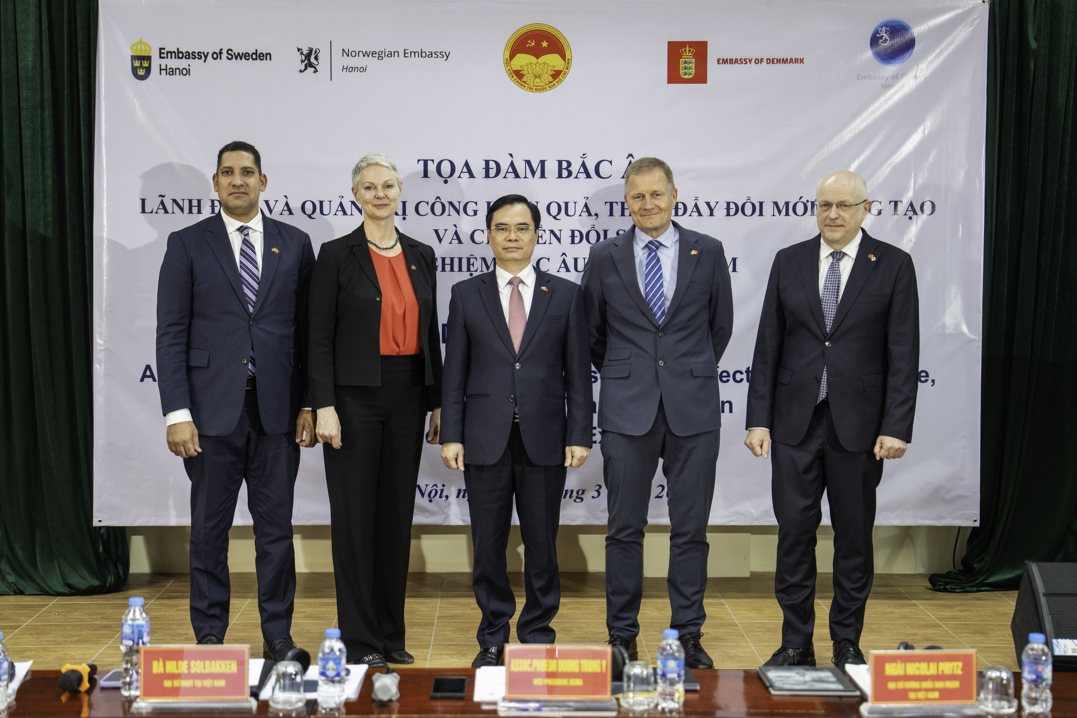 Tọa đàm khoa học: Lãnh đạo quản trị công hiệu quả, thúc đẩy đổi mơi sáng tạo và chuyển đổi số: Kinh nghiệm Bắc Âu và Việt Nam diễn ra ngày 23/03 tại Học viện Chính trị Quốc gia Hồ Chí Minh. Sự kiện có sự phối hợp của Đại sứ quán 4 nước Bắc Âu gồm Thụy Điển, Đan Mạch, Phần Lan và Nauy. |