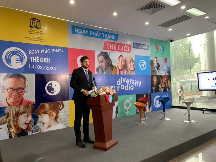 Tôi rất vui và vinh dự được cùng quý vị tham dự lễ kỷ niệm Ngày Phát thanh Thế giới với chủ đề “Phát thanh và Sự đa dạng” ngay tại khán phòng của ngôi nhà Đài tiếng nói Việt Nam – nơi phát đi tiếng nói của quốc gia Việt Nam. Giờ phút này, lịch sử tự hào của Đài tiếng nói Việt Nam nhắc chúng ta nhớ về dấu mốc ngày mồng 2 tháng 9 năm 1945 – khi Chủ tịch Hồ Chí Minh đọc Bản Tuyên ngôn Độc lập của Nước Việt Nam Dân chủ Cộng hòa – và chưa tới 1 tuần sau đó, Đài tiếng nói Việt Nam được hình thành và phát thanh từ Thủ đô Hà Nội. Năm nay, những thành tựu của Đài tiếng nói Việt Nam sẽ được vinh danh cùng với những thành tựu khác của đất nước, để đánh dấu 75 năm Tuyên ngôn Độc lập của Việt Nam. UNESCO cũng hy vọng sẽ được cùng quý vị tổ chức kỷ niệm bởi năm nay, 2020, UNESCO tròn 75 tuổi.