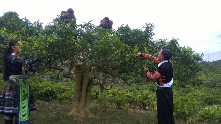 Người dân thu hoạch chè Shan Tuyết Suối Giàng. Ảnh Báo Yenbai |