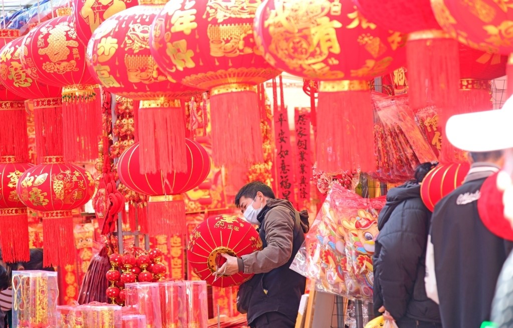 Đèn lồng đỏ ở Phố chợ Tết tại Thương đô Phú Thành, thành phố Di Lặc, châu Hồng Hà, tỉnh Vân Nam ngày 5/2/2024. Ảnh: VCG |