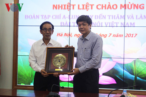 Sáng 25/7, tại Trung tâm phát thanh Quốc gia, 58 Quán Sứ, Hà Nội, Phó Tổng giám đốc Đài TNVN Vũ Hải tiếp Đoàn Tạp chí A-lun-may (CHDCND Lào) do ông Sinxay Takounsack, Quyền Tổng biên tập Tạp chí, làm trưởng đoàn.