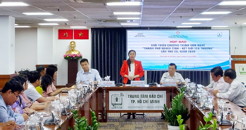 Phó Chủ tịch Uỷ ban MTTQ Việt Nam thành phố Hồ Chí Minh Phan Kiều Thanh Hương thông tin về chương trình văn nghệ “Thành phố nghĩa tình - Kết nối yêu thương” 2020. - Ảnh: thanhuytphcm.vn |