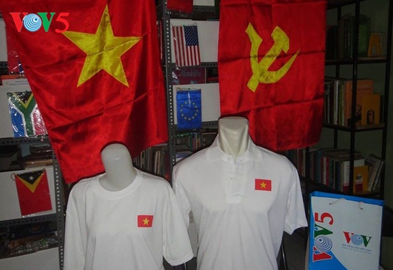 Và thế là ở góc “Việt Nam”, ông trưng bày một tủ kính dài, bên trong là hiện vật của VOV như : chứng nhận nghe đài, tượng cô gái mặc áo dài, mũ, áo, tiền Việt Nam, pin, đồng xu, tem, đĩa CD… Phía bên trên tủ kính, lá cờ đỏ sao vàng được đặt ở vị trí cao nhất, bên dưới là ảnh Chủ tịch Hồ Chí Minh.