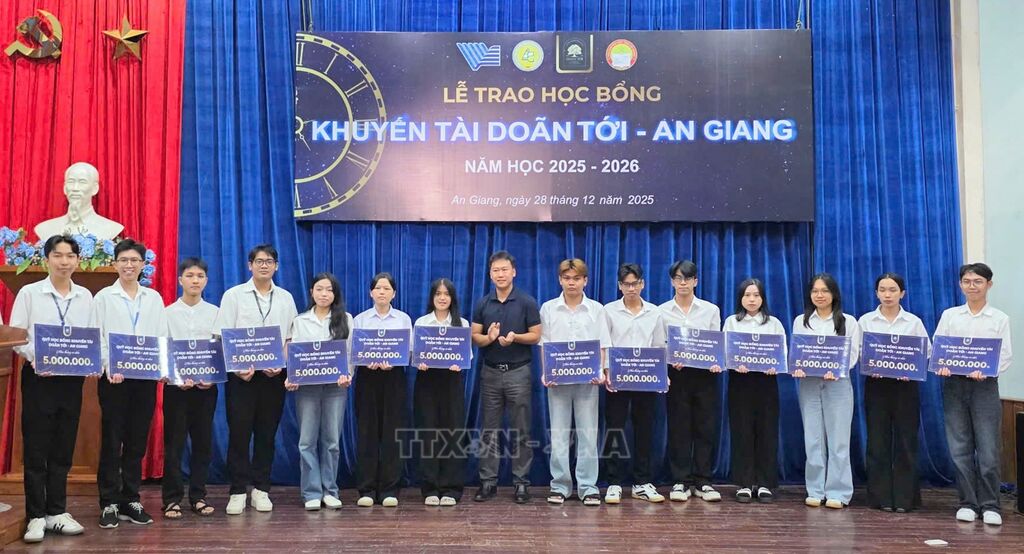 Ngày 28/12, tại tỉnh An Giang, Hội Khuyến học tỉnh An Giang phối hợp với Trường Đại học An Giang (Đại học Quốc gia Thành phố Hồ Chí Minh) tổ chức trao Học bổng khuyến tài Doãn Tới - An Giang năm học 2025 - 2026 cho sinh viên trong tỉnh.
