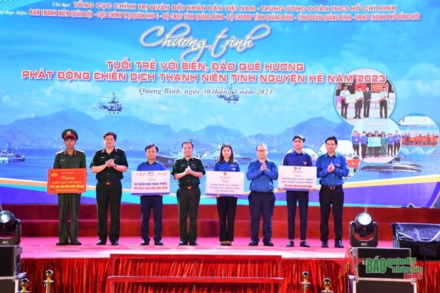 Tại đây, Ban Tổ chức trao tặng 115 suất quà cho Cựu Chiến binh đoàn Tàu Không số, gia đình có cán bộ, chiến sỹ thực hiện nhiệm vụ tại Trường Sa, cảnh sát biển và kiểm ngư, gia đình chính sách, gia đình ngư dân có hoàn cảnh khó khăn trên địa bàn tỉnh. Ban Tổ chức cũng trao tặng 1 “Ngôi nhà 100 đồng” và 2 “Ngôi nhà Hạnh phúc” cho cán bộ, chiến sỹ và nhân dân có hoàn cảnh đặc biệt khó khăn trên địa bàn tỉnh Quảng Bình; trao hỗ trợ 30 mô hình sinh kế cho đoàn viên, thanh niên và người dân có hoàn cảnh khó khăn; tặng 1.500 lá cờ Tổ quốc, 400 áo phao và phao cứu hộ; tặng ti vi cho Đại đội pháo phòng không 37 và quạt cây cho các gia đình ngư dân có hoàn cảnh khó khăn.