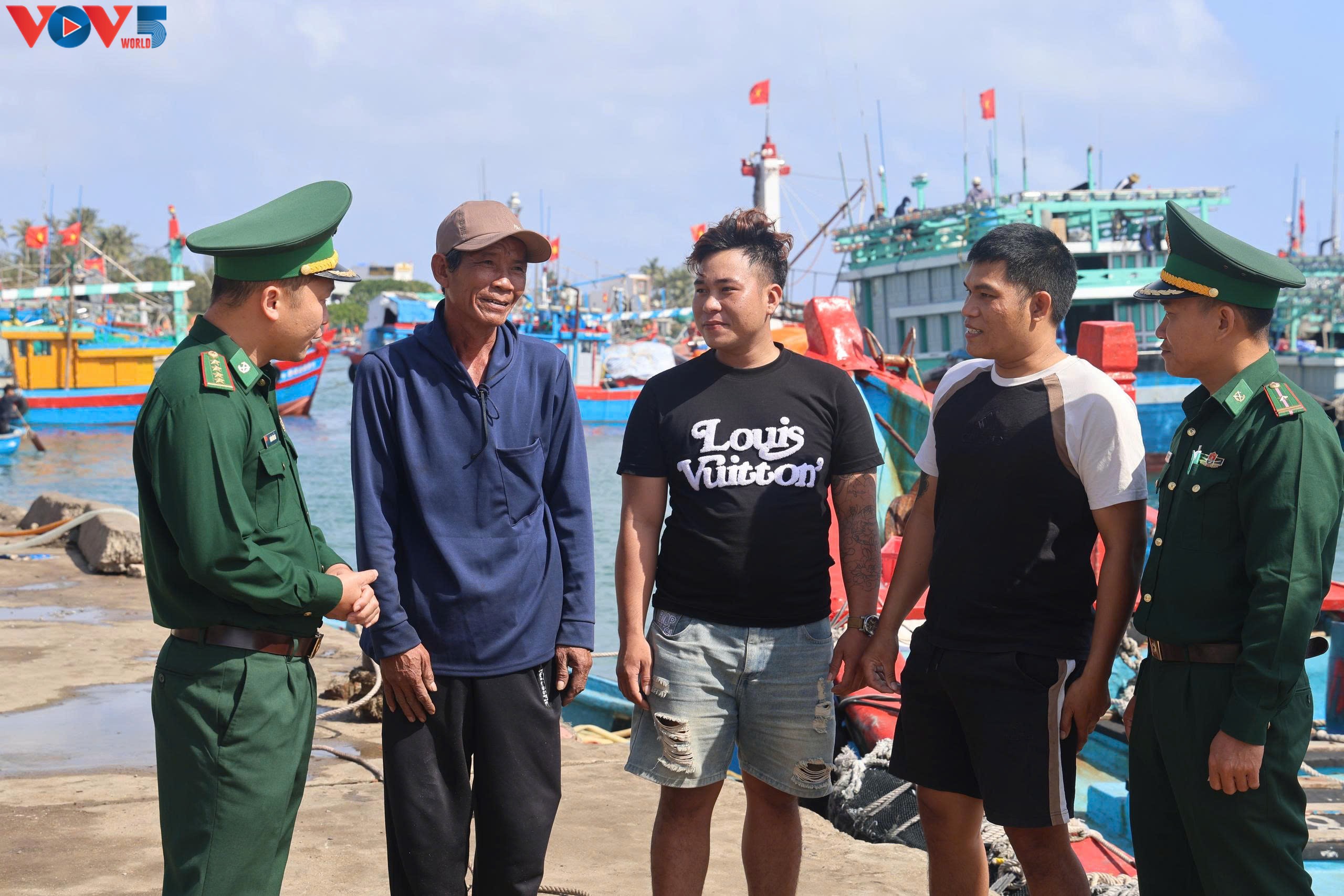 Border Guard officers in Quang Ngai province brief fishermen on the upcoming election. (Photo: Thanh Thang/VOV) |