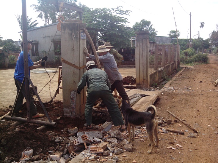 ![]() People rebuild fence to give land for road expansion (photo:buonmathuot.gov.vn) |