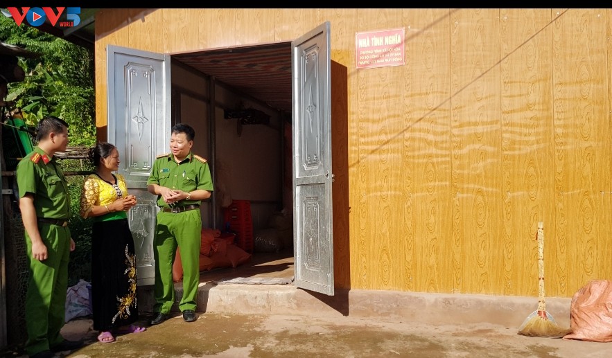 Policemen congratulate Lo Thi Quyet for her new house (Photo: Ngoc Anh/VOV5) |