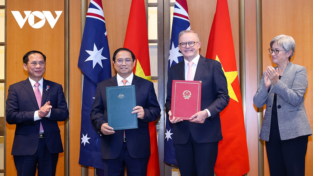 The Prime Ministers of Vietnam and Australia handed over documents to establish a comprehensive strategic partnership. |