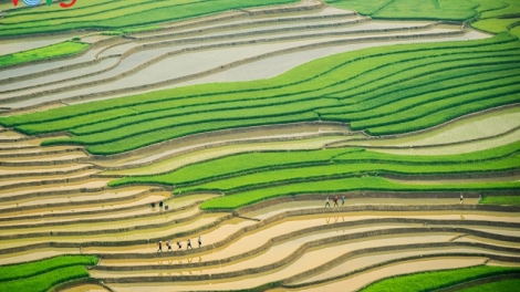 (VOVWORLD) - 提到穆庚寨,喜爱探险的旅行者脑海里常会浮现出层层叠叠、雄伟壮观的梯田上一片片黄灿灿的成熟稻谷的景象。但在流水季节造访穆庚寨,你一定会对当地多彩的画卷感到惊讶。土地、秧苗、水稻的颜色与森林的颜色浑然一体。生活创造了原始而又雄伟壮观、抒情、浪漫的奇观。