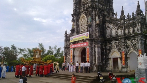(VOVworld)- 广宁省芒街市茶古教堂日前举行复活节。由于茶古教堂是越南较为古老和美丽的教堂之一,因此除了当地教徒外,复活节还吸引众多国内外游客参加。