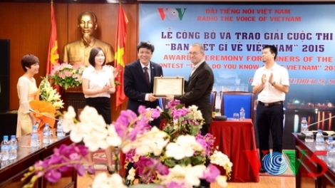 (VOVworld)- 越南之声广播电台9月25日上午在河内举行2015年“您对越南知多少”知识竞赛颁奖仪式。这是本台国家对外广播频道每5年举办一次的知识竞赛,五大洲的外国受众及旅外越南侨胞均可参加。