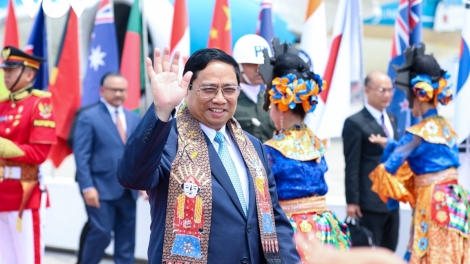 (VOVWORLD) - 越南政府总理范明政率领的越南高级代表团出席9月4日至7日在印度尼西亚首都雅加达举行的第43届东盟峰会及相关峰会。范明政在会上发表讲话时积极分享越南的观点,提出了许多重要合作领域的倡议和方向,以实现《东盟要旨:增长的中心》这一主题,助力建设团结、坚强、在世界和地区日益具有重要作用和地位的东盟共同体。