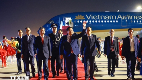 (VOVWORLD) -当地时间8月31日晚,越南政府总理范明政及其一行乘专机抵达中国天津市滨海国际机场,开始出席上海合作组织峰会并在中国开展活动之旅。