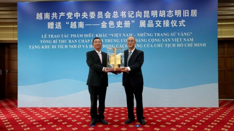(VOVWORLD) -6月13日,越共中央总书记苏林向中国云南昆明胡志明旧居赠送“越南—金色史册”展品交接仪式在昆举行。