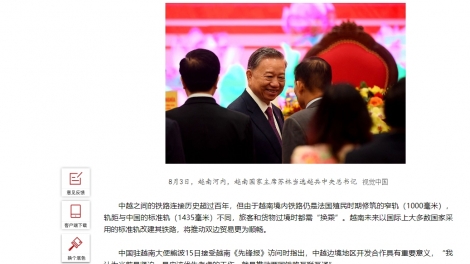 (VOVWORLD) - 越共中央总书记、国家主席苏林对中国进行的国事访问广受中国媒体关注。中国媒体最近纷纷发表文章强调,此访是传统的延续,定将推动两国关系深入务实发展。