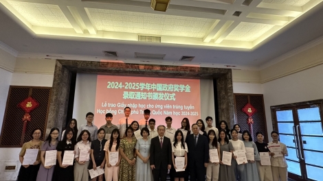 (VOVWORLD) - 2024年8月8日下午,中国驻越南大使馆在河内为2024-2025学年中国政府奖学金获得者举行录取通知书颁发仪式。