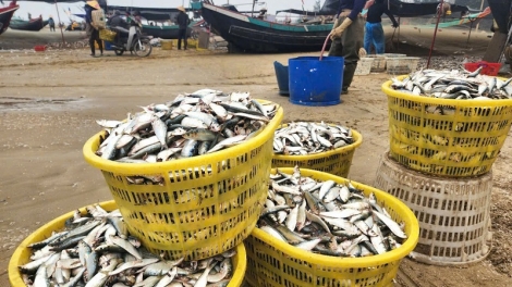 (VOVWORLD) - 这些天,河静省数百艘渔船满载鲱鱼返港靠岸。每艘渔船平均捕获700至800公担鲱鱼,有的甚至达2吨。