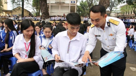 (VOVWORLD) - 国防部海军部队后勤-技术局与太原省教育培训局4月10日为太原市近5000名高中生举行海洋岛屿主权宣传教育活动。