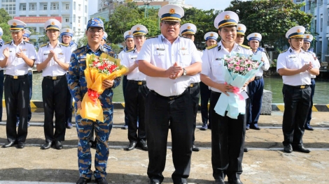 (VOVWORLD) - 12月18日下午在胡志明市福胜坊, 越南海军第二区171旅09号舰安全靠港,圆满结束自12月10日至13日前往印度尼西亚参加第二次东盟—美国海上演习(AUMX-2)的1700多海里行程。