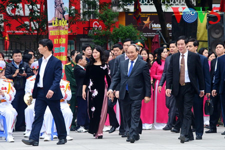 越南政府总理阮春福及河内各部门领导出席栋多丘庙会并上香