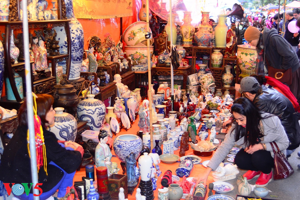 附近的街道也摆摊,出售陶瓷、铜器等装饰品
