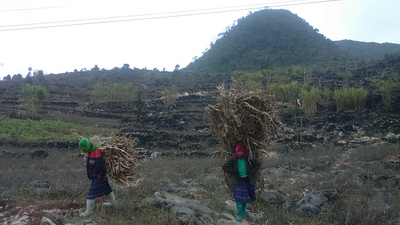 居民给牛备草料